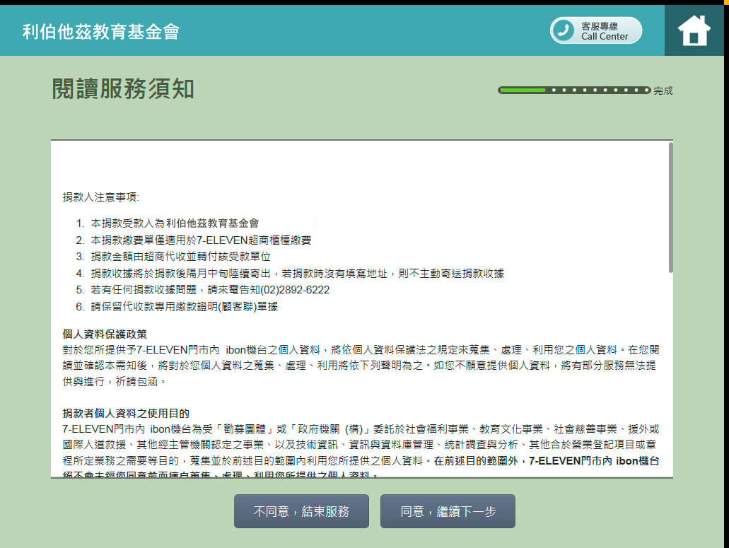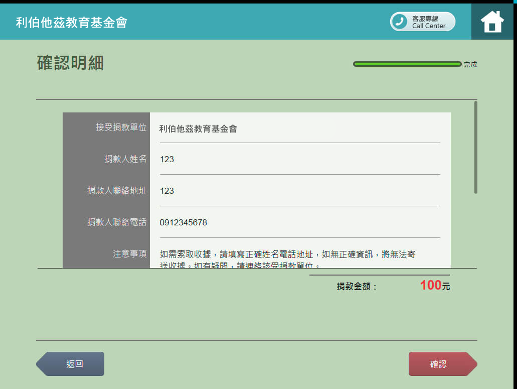 8.輸入捐款電話