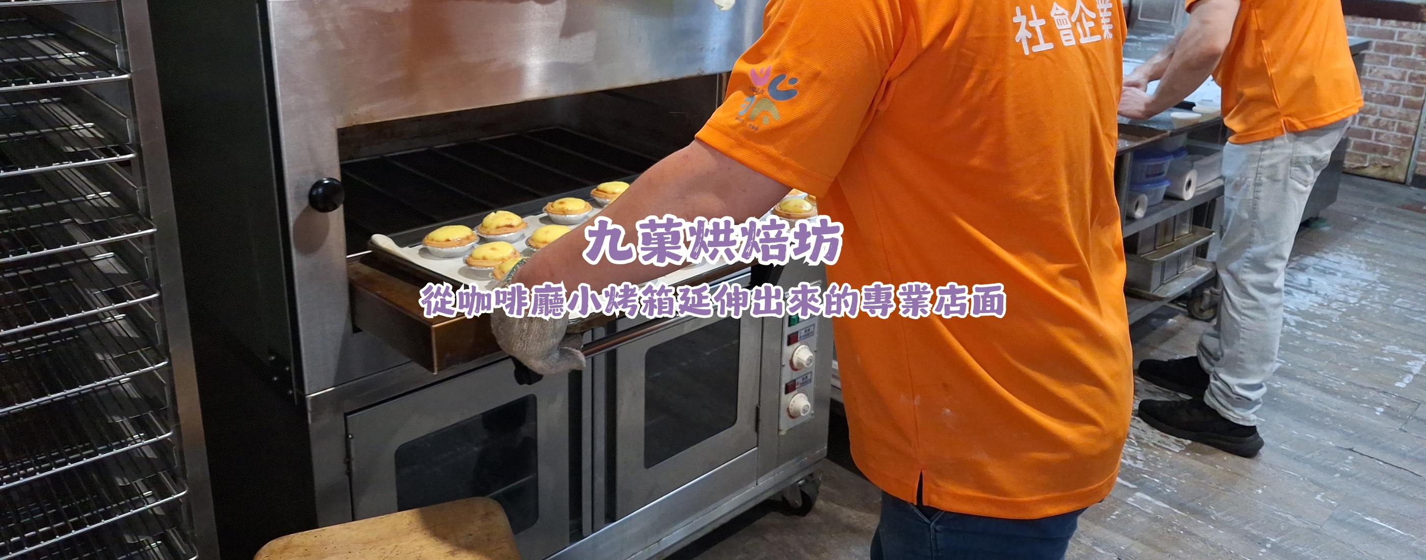 最初,青少年都是在心聚點後方的小廚房裡製作簡單的烘焙品,沒想到有越來越多的少年對烘焙產生興趣,因此開闢了九菓烘焙坊這個專業的烘焙場域,以師徒制模式提供青少年專業烘焙的學習機會。