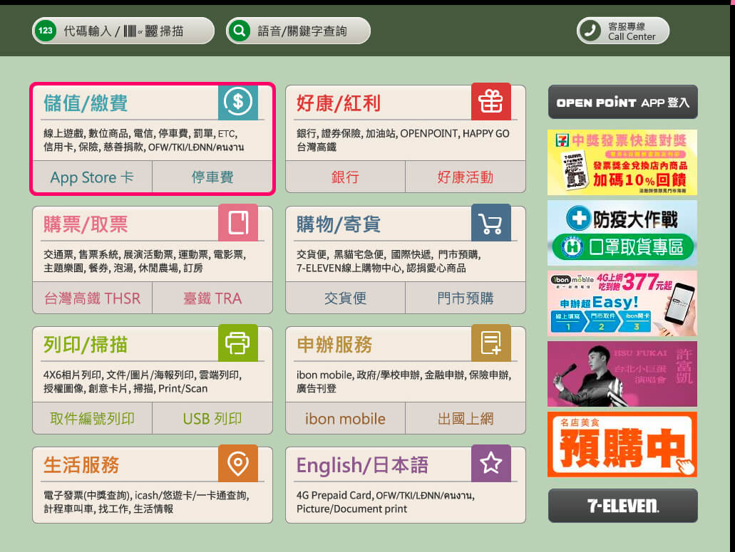 1.點選儲值繳費