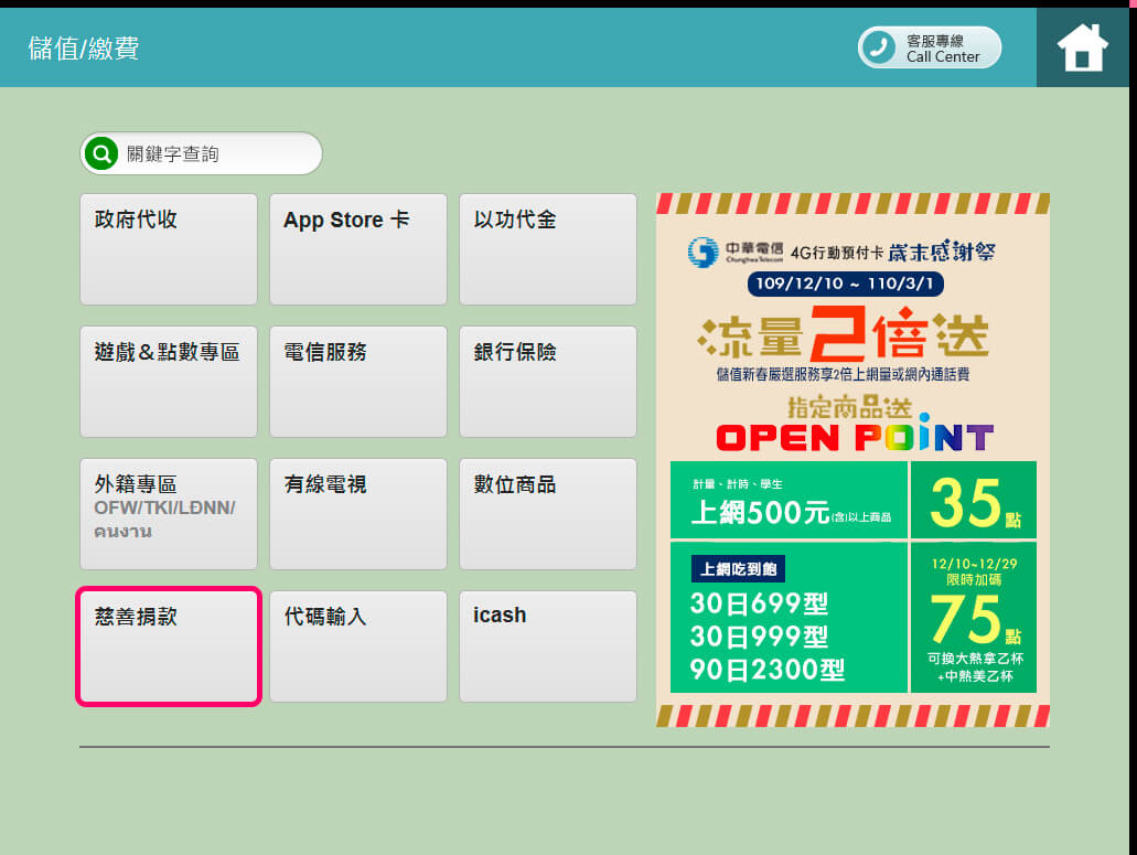 2.點選慈善捐款
