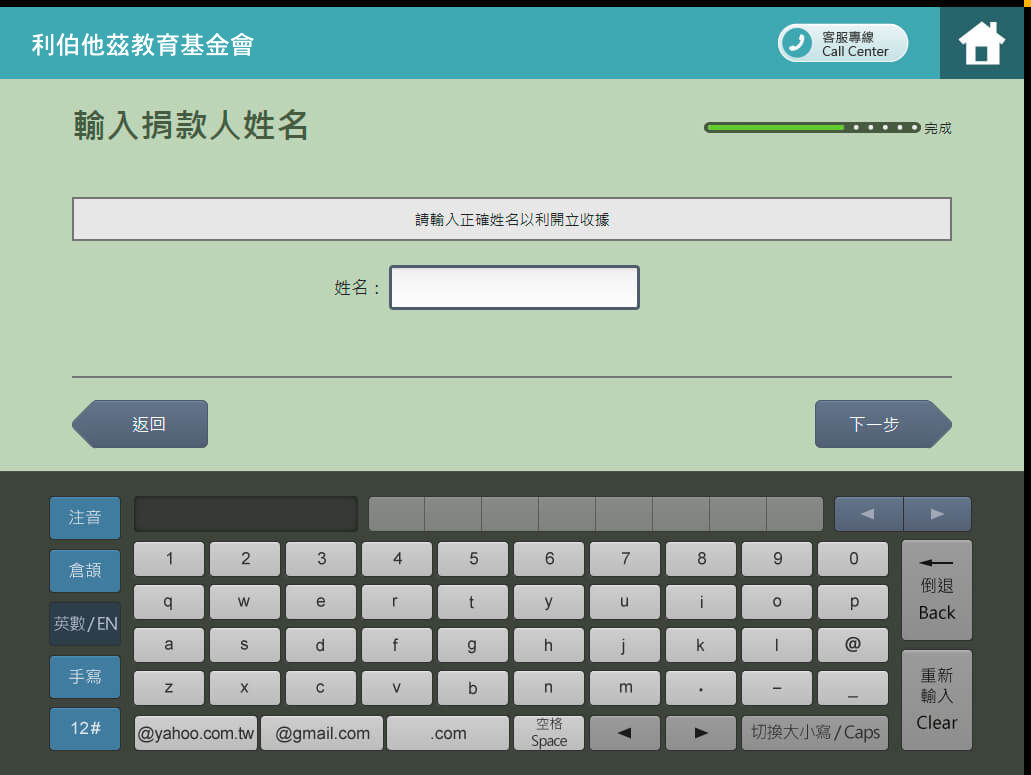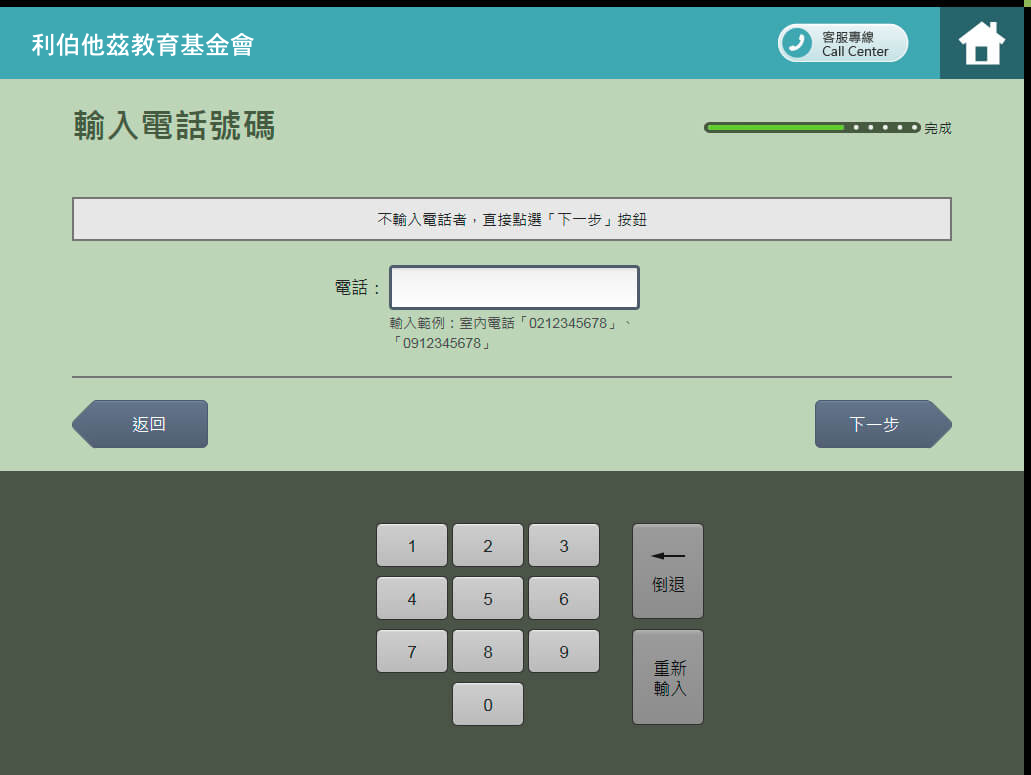 8.輸入捐款電話