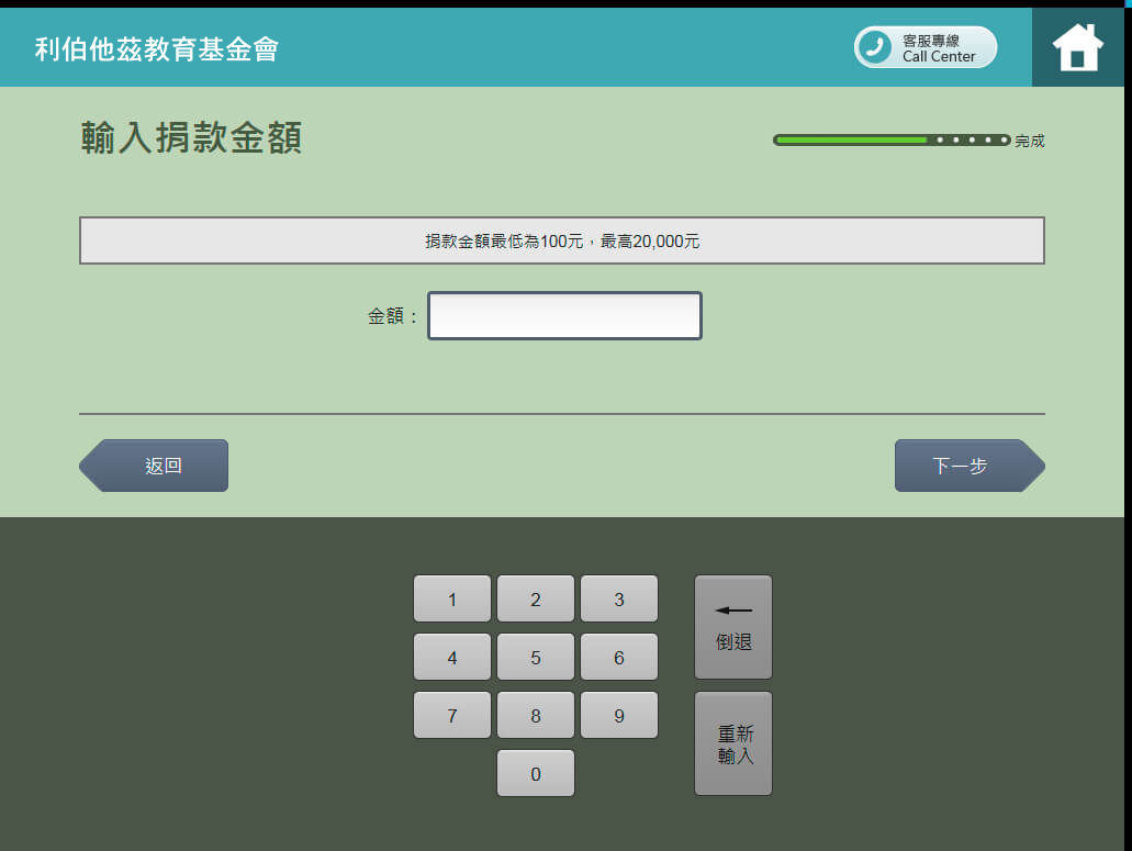 7.輸入捐款金額