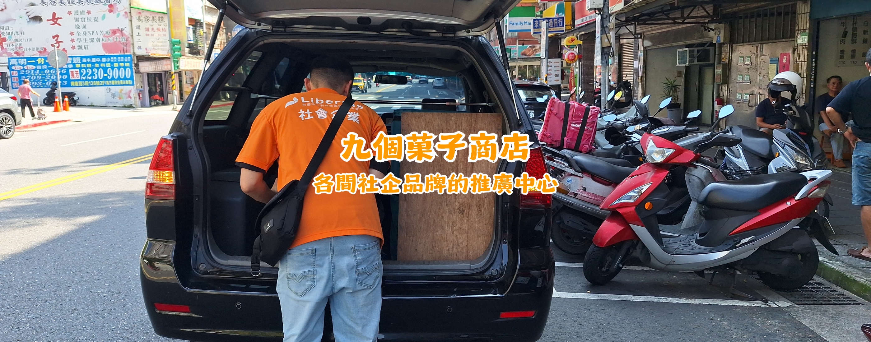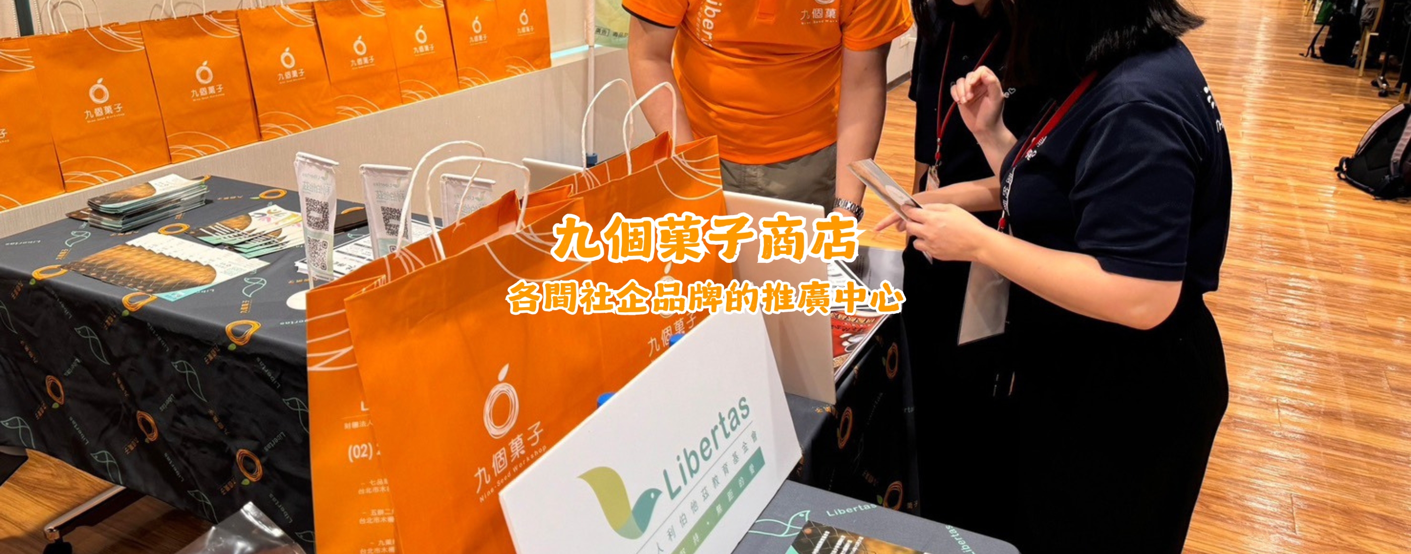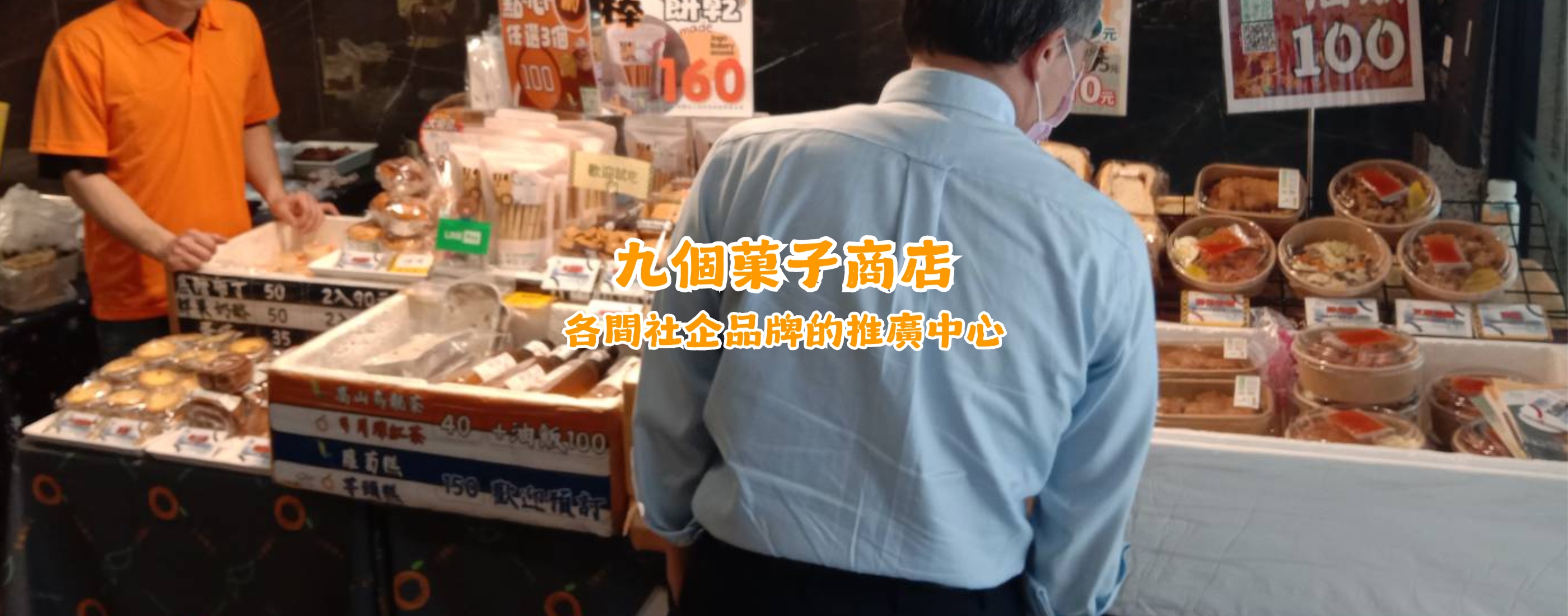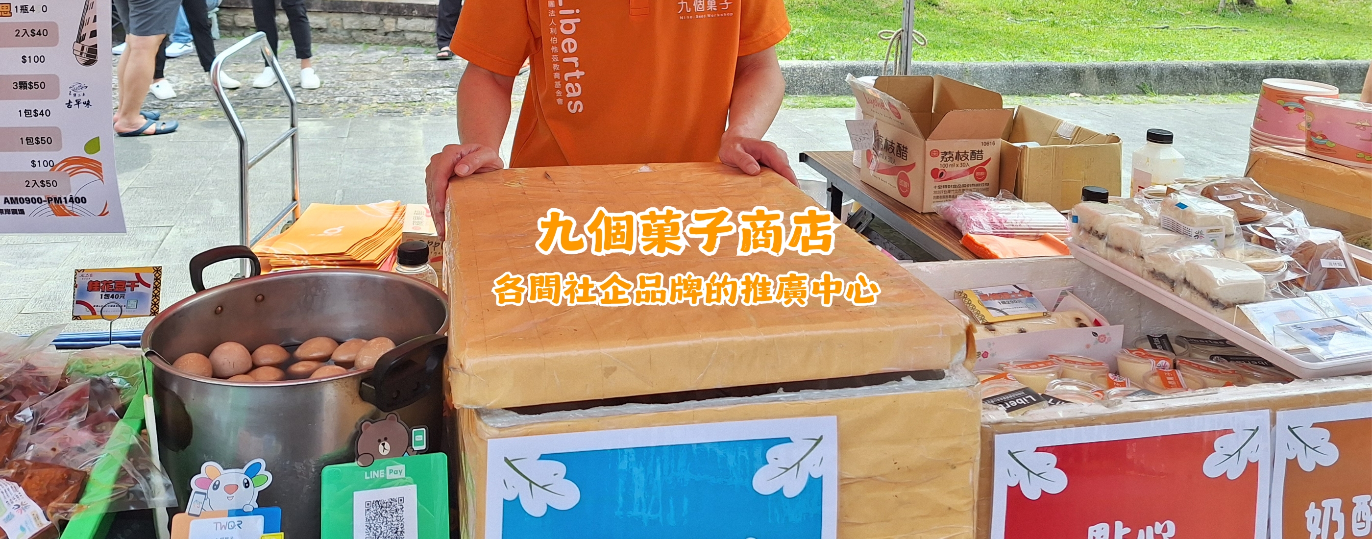 九個菓子商店以培育銷售技能為主軸,使藥癮學員能重新建立與人互動之能力,一開始九個菓子商店以販售各大監所的產品為主,如今已慢慢轉型為利伯他茲各間社會企業的品牌推廣中心,負責透過線上或線下管道銷售每間社企的產品。